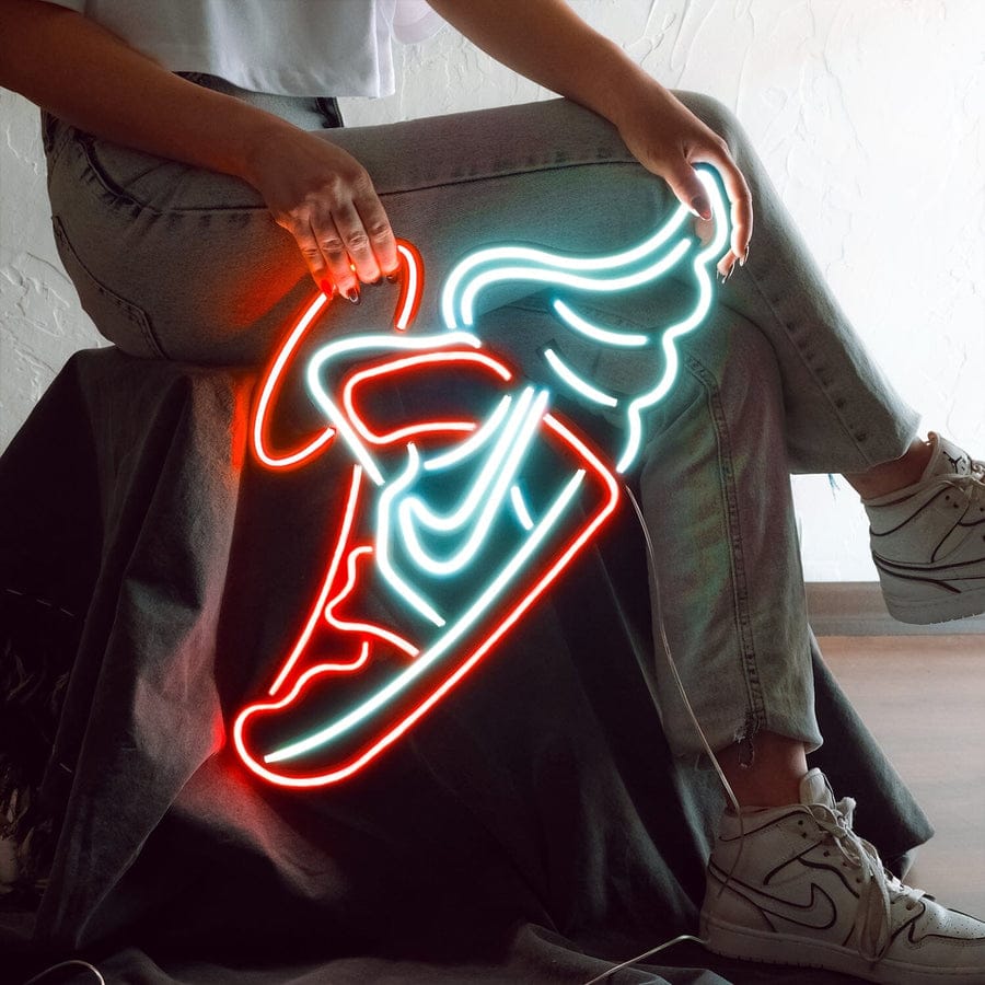 La Lámpara "Sneaker Wing" combina estilo y luz vibrante para transformar cualquier espacio. Su diseño moderno resalta la pasión por los sneakers creando un ambiente único y lleno de energía.