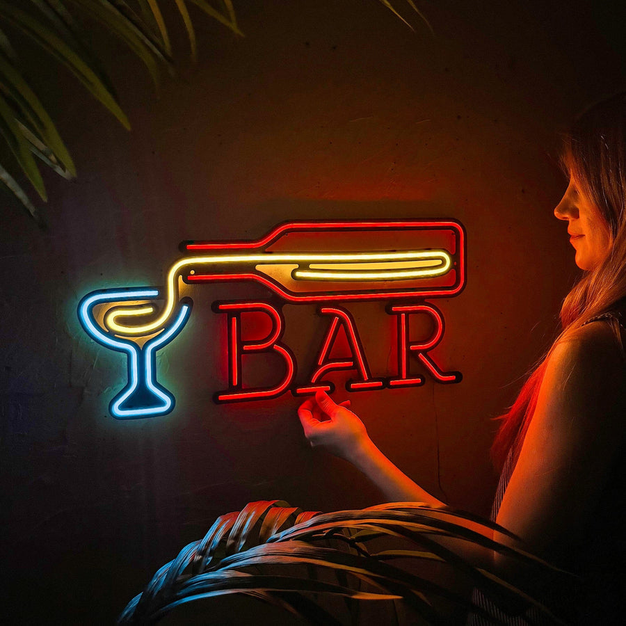 Transforma cualquier rincón en tu bar personal con esta lámpara neón "Bar". Un toque retro y vibrante que da vida a tu espacio, ideal para salas, cocinas, terrazas o negocios que quieren destacar con estilo.